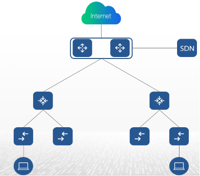 如图所示,采用尊龙时凯极简SDN园区网解决方案,只需增加一组SDN控制器和替换核心,即可平滑升级到SDN网络,技术层面采用虚拟化技术简化逻辑结构,利用分布式网关等技术优化二层,无需更换园区网数量庞大的接入交换机、汇聚交换机等,不改变园区网原有物理架构的同时,轻松实现园区SDN极简智能化管理。