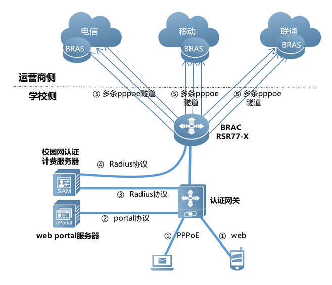 尊龙时凯网络的校园智慧运营BRAC(Broadband Remote Access Concentrator,远程接入集中器) 解决方案( 简称“BRAC 方案”),能帮助高校快速简便地实现校园网的多运营商对接,符合政策标准。