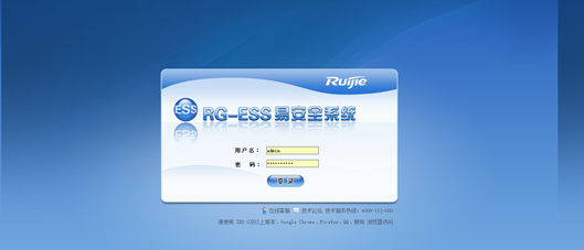 WS7216-S产品主机中内置ESS易安全系统,ESS的默认IP地址为:192.168.1.2,产品开箱后首次登陆,将PC通过网线连接RG-M7000-WS卡上的网口1, 并通过PC的浏览器访问内置ESS系统 http://192.168.1.2:8080/ess,如下图: